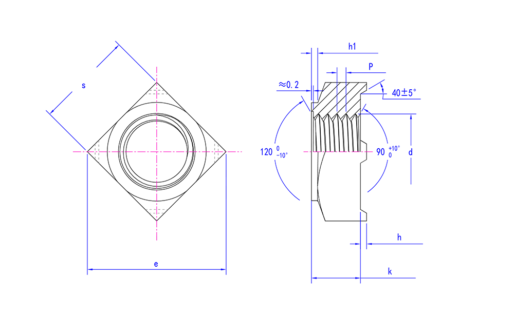 | Príomhtháscairí don Roghnú | Méid snáithe, dearadh cearnach, neart táthú |